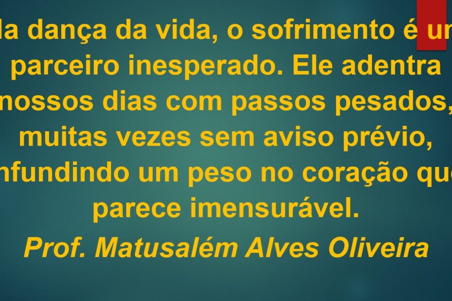 “Perto está o Senhor dos que têm o coração quebrantado e salva os de espírito oprimido.” Salmos 34:18 “O homem que teme o sofrimento já está sofrendo pelo que teme.” Michel de Montaigne Na dança… QUANDO O SOFRIMENTO CHEGA