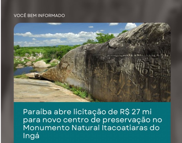 O Governo da Paraíba publicou uma licitação no valor de R$ 27 milhões para contratação de uma empresa responsável por elaborar os projetos e executar a construção da nova sede administrativa e do centro de… Governo do Estado abre licitação de R$ 27 mi para novo centro de preservação no Monumento Natural Itacoatiaras do Ingá