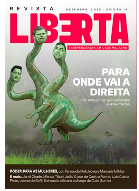 Liberta – A direita em crise de identidade. Com uma imagem alegórica e provocativa, a revista questiona os rumos da direita brasileira. A criatura instável simboliza um campo político fragmentado, confuso e à procura de direção. A capa sugere que o conservadorismo nacional enfrenta dificuldades para se reorganizar, dialogar com a sociedade e apresentar um projeto coerente para o país.