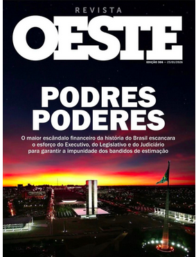Oeste – A revolta como narrativa. A revista aposta no choque ao retratar a corrupção como eixo central da crise brasileira. Brasília ao fundo reforça a ideia de um sistema contaminado, em que Executivo, Legislativo e Judiciário falham em responder às expectativas da sociedade. O tom é de indignação permanente, espelhando um país cansado, polarizado e em constante confronto.