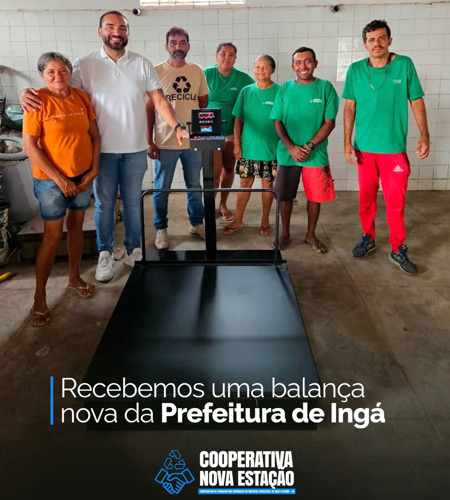 A Cooperativa de Catadores de Materiais Recicláveis Nova Estação, em Ingá, recebeu uma nova balança digital entregue pela Prefeitura Municipal. O equipamento chega para fortalecer o trabalho dos cooperados, garantindo mais precisão na pesagem dos materiais e contribuindo para a organização das atividades diárias.