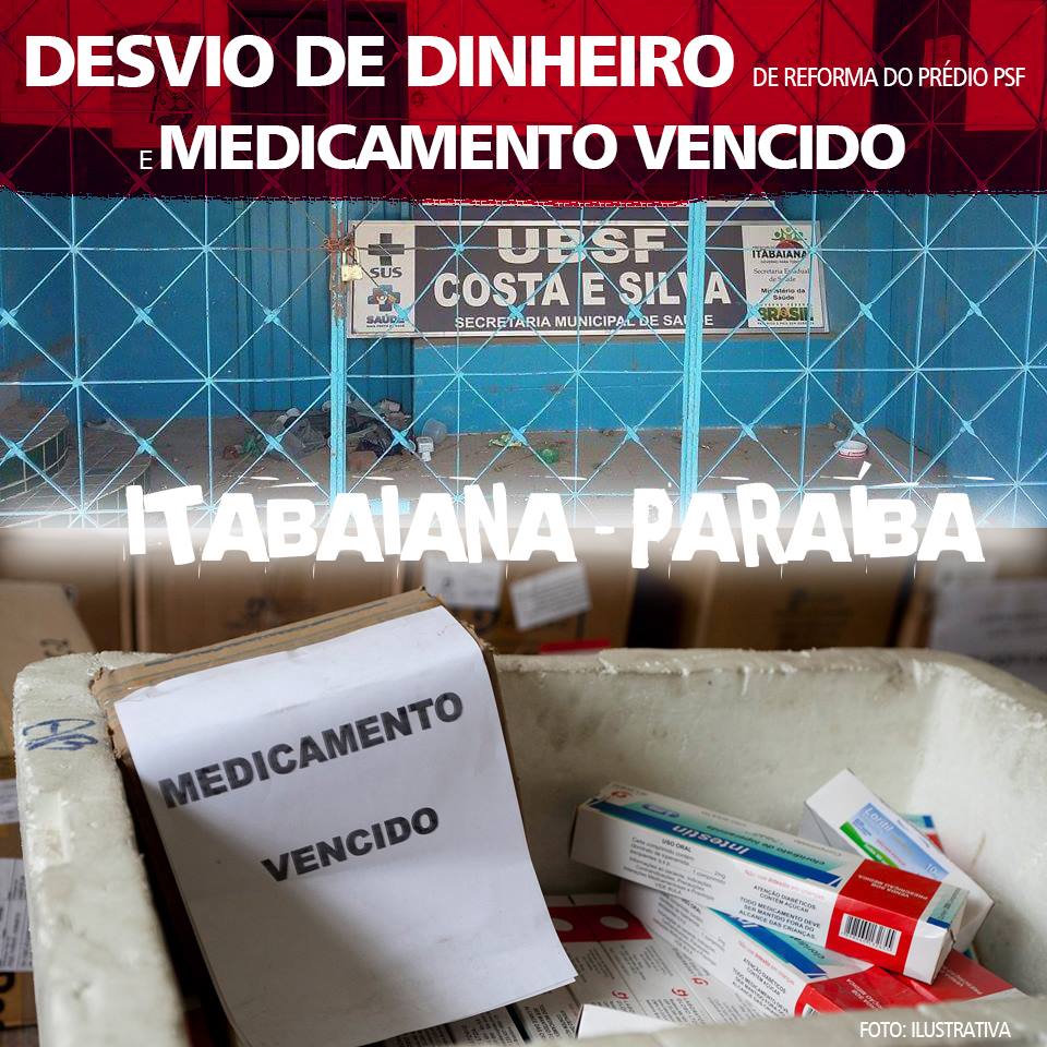 Secretária Municipal de Saúde de ITABAIANA denuncia em entrevista… DESVIO DE DINHEIRO da reforma do prédio PSF (que nunca houve), e MEDICAMENTO VENCIDO … além de outros desmandos deixado pelo gestão passada… (no popular: roubam o dinheiro da saúde, e ainda deixaram o povo sem remédios)… Esperamos da atual gestão, muito trabalho e honestidade. Porque se formos depender da Justiça, Ministério Público, Tribunal de Contas e Câmara Municipal, estamos fodido.