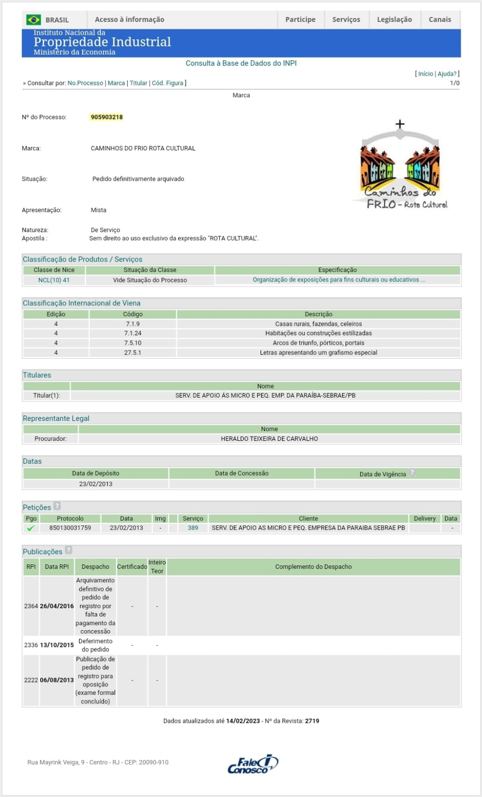Empresário age de má fé e registra as marcas “Rota Cultural – Caminhos do Frio e Rota Cultural – Raízes do Brejo”