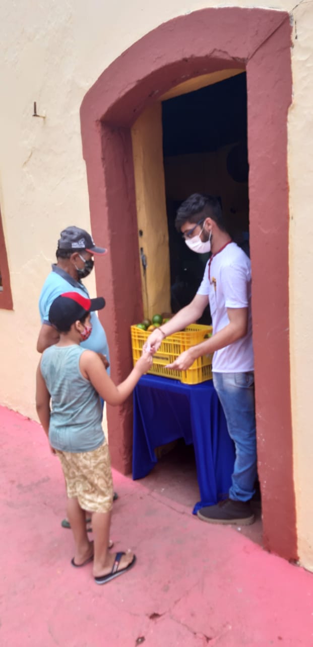 A pessoa que que vai adquirir a marmita, tem apenas o trabalho de ficar na fila, que com todos cuidados tomados para prevenir a contaminação do covid-19 conta com fiscalização e a higienização feita pela Bombeira Civil Elizangela na entrada do Restaurante Casa Grande da Senzala, onde está sendo feito toda a alimentação do TÁ NA MESA.