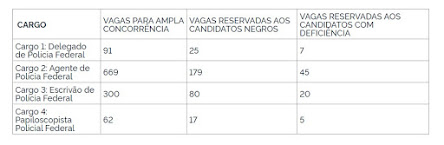 Foi publicado nesta sexta-feira (15), o edital do concurso para os cargos de Delegado, Agente, Escrivão e Papiloscopista da Polícia Federal. No documento, disponibilizado no Diário Oficial da União, estão detalhados os requisitos para concorrer a uma das 1.500 vagas, além dos conteúdos programáticos e os prazos.