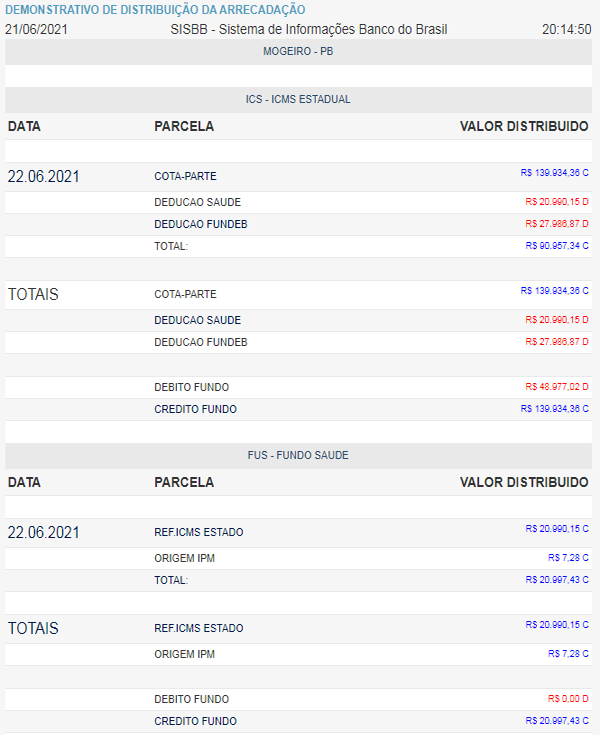Municípios recebem recursos financeiros nesta terça-feira, 22 de JUNHO 2021… Entre eles: ICMS estadual (imposto sobre circulação de mercadorias e prestação de serviços) … Valores pesquisado pelo blog Itabaiana hoje, junto ao sistema de informações do Banco do Brasil. INCLUINDO prefeitura, fundeb e saúde.