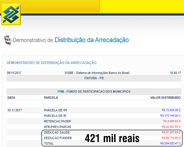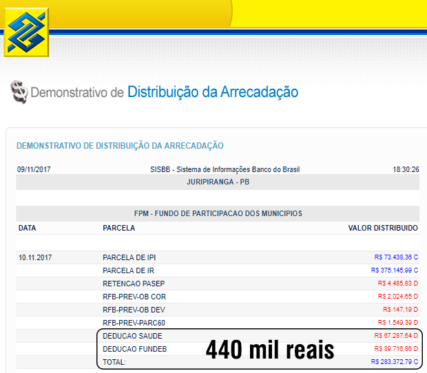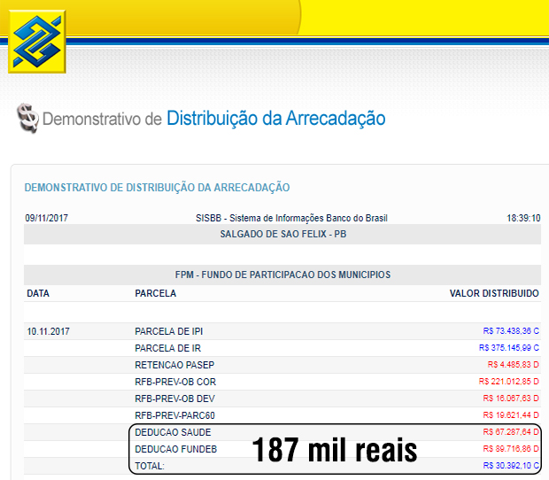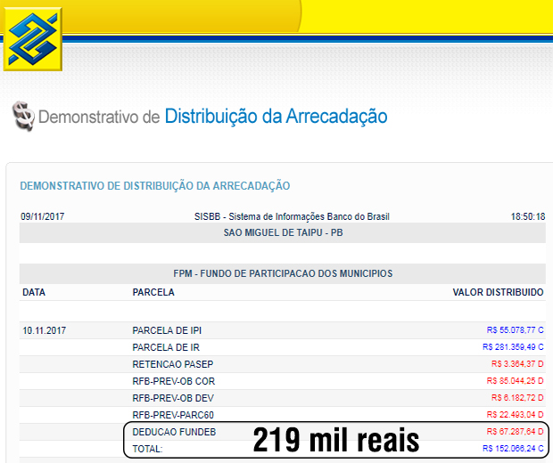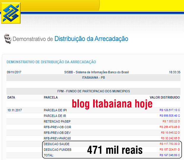 E OLHA O DINHEIRO AÍ GENTEM !   Prefeituras recebem o primeiro FPM do mês de novembro.