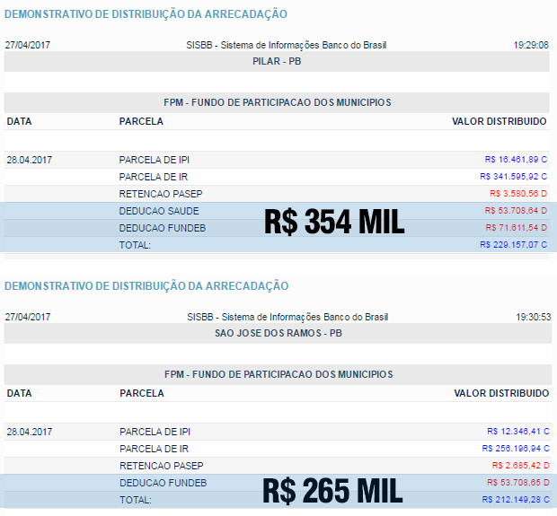 Nos valores estão incluídos PREFEITURA (total), SAÚDE E FUNDEB…