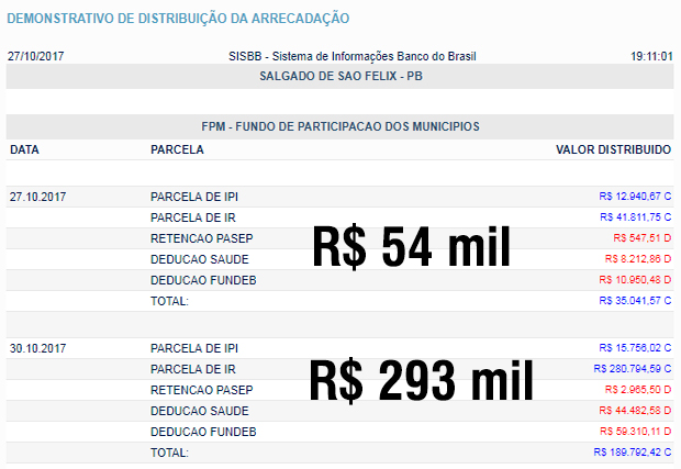 SALGADO DE SÃO FÉLIX: fpm extra 54 mil + FPM 293 mil (total: 347 mil reais)