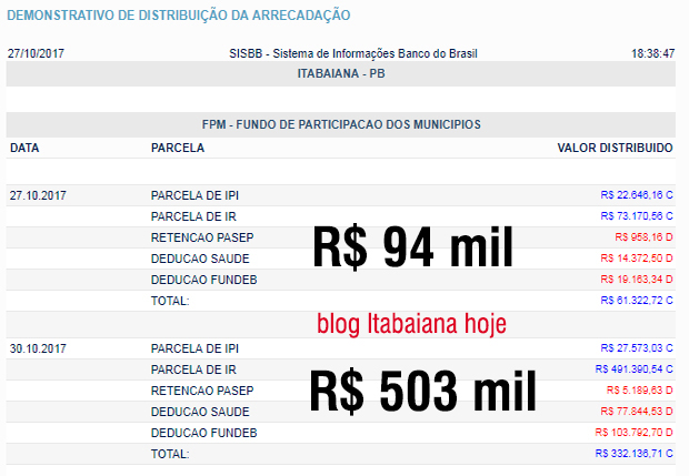 ITABAIANA: fpm extra 94 mil + FPM 513 mil (total: 607 mil reais)