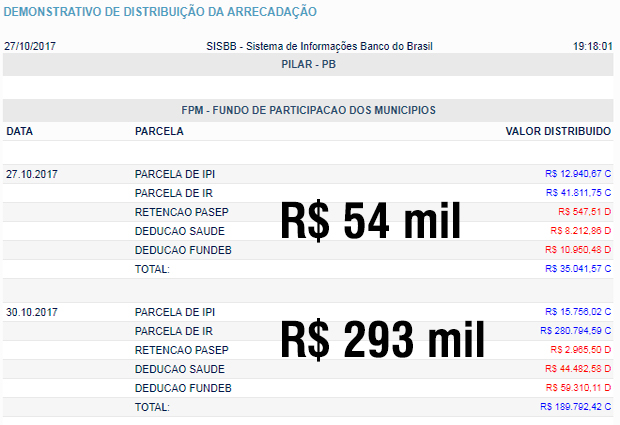 PILAR: fpm extra 54 mil + FPM 293 mil (total: 347 mil reais)