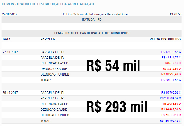 ITATUBA: fpm extra 54 mil + FPM 293 mil (total: 347 mil reais)