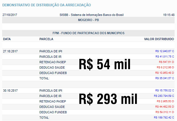 MOGEIRO: fpm extra 54 mil + FPM 293 mil (total: 347 mil reais)