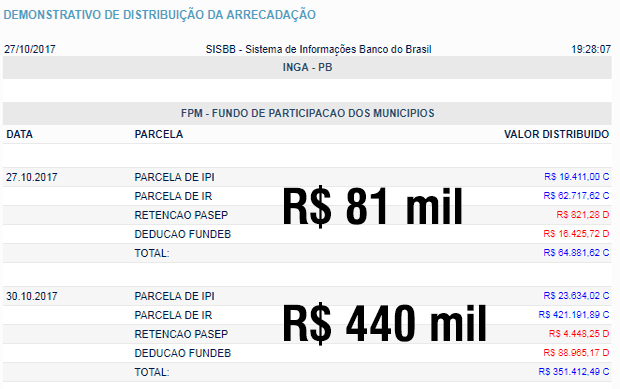 INGÁ: fpm extra 81 mil + FPM 440 mil (total: 521 mil reais) para PREFEITURA / SAÚDE / FUNDEB…