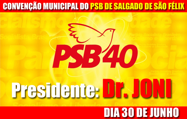 DIA 30 DE JUNHO ÁS 15 HORAS, CONVENÇÃO DO PSB DE SALGADO DE SÃO FÉLIXpor Vavá da Luz20 de junho de 2012 WhatsApp