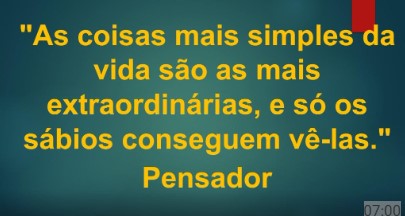 “As coisas mais simples da vida são as mais extraordinárias, e só os sábios conseguem vê-las.” Pensador