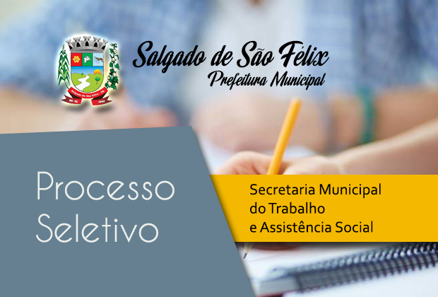 Processo Seletivo Público Simplificado para contratação temporária de profissionais para Secretaria Municipal do Trabalho e Assistência Social… A Secretaria Municipal Do Trabalho e Assistência Social de Salgado de São Félix-PB, no uso de suas atribuições legais e com amparo na Lei No 545/2017, faz saber que, encontram-se abertas as inscrições para o Processo Seletivo Público Simplificado com base no exame de currículo/títulos e prova escrita, para contratação por tempo determinado com a finalidade de atendimento das necessidades temporárias de excepcional interesse público, nas condições e prazos previstos no presente Edital. mais informações no site da Prefeitura Municipal de Salgado.