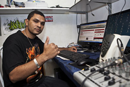 É o que afirma Emerson Cláudio dos Santos, o rapper Fiell. Ele é um dos comunicadores da Rádio Comunitária Santa Marta, localizada na favela de mesmo nome, Zona Sul da cidade do Rio de Janeiro.