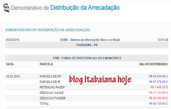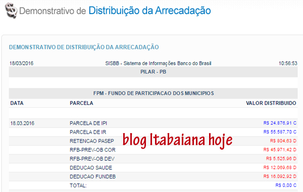 O segundo repasse do Fundo de Participação dos Municípios (FPM) de março foram depositados nesta sexta-feira, 18. As prefeituras de Salgado, Mogeiro, Pilar e Ingá, tiveram o FPM zerado, pela segunda vez este mês. Os valores creditados para essas prefeituras são referentes apenas o Fundeb e saúde; Mogeiro 28 mil 161 reais, Salgado 28 mil 161 reais, Pilar 28 mil 161 reais, Ingá 24 mil 139 reais, só Fundeb… Outros municípios incluídos valores para a prefeitura, Fundeb e saúde: ITABAIANA 139 mil reais, JURIPIRANGA 79 mil reais, SÃO JOSÉ DOS RAMOS 59 mil reais, SÃO MIGUEL DE TAIPU 59 mil reais, ITATUBA 79 mil reais… veja dados dos valores separados…